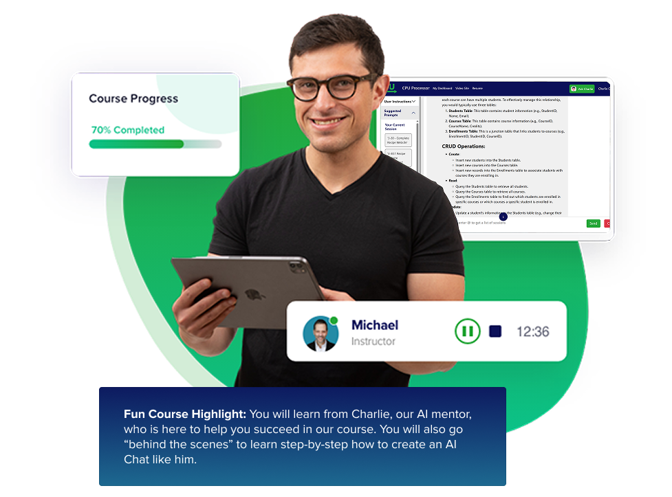 Compete successfully in the job market no matter what happens with AI. This course is the ideal blend of software development fundamentals and the latest tools and skills you need to succeed in collaboration with AI.